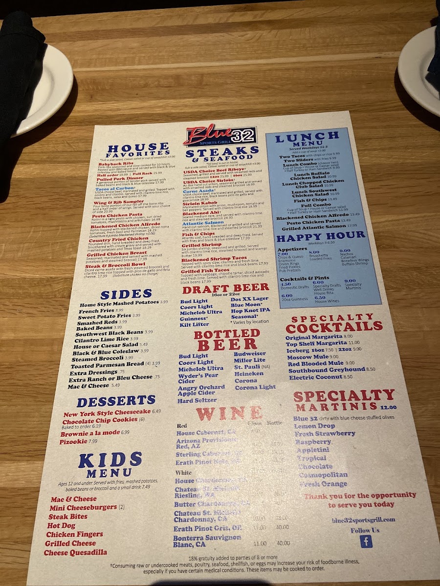With standout customer favorites like the spinach artichoke dip and gluten-free options, Blue 32 Sports Grill is truly a culinary gem for sports enthusiasts and food lovers alike.